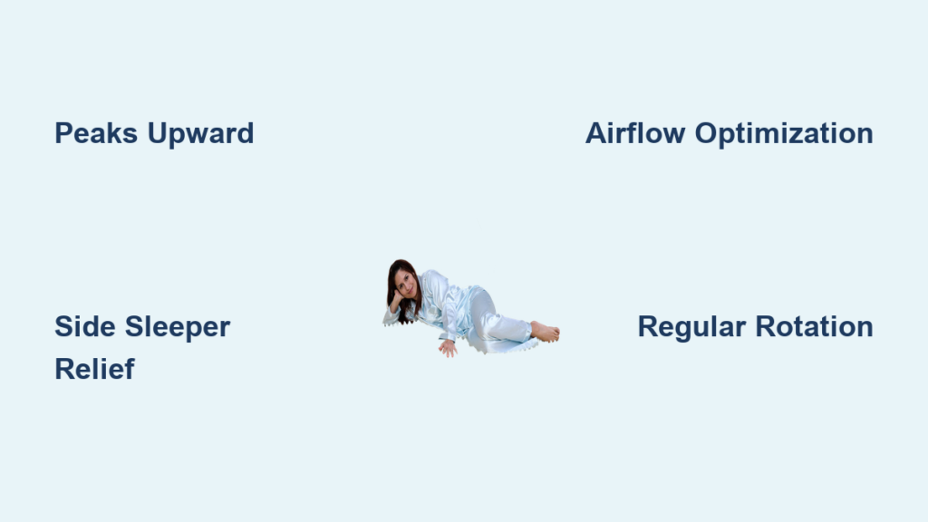 The valleys between peaks create natural air corridors that allow heat and moisture to escape rather than becoming trapped against your skin. To maximize this cooling effect, avoid placing heavy blankets or non-breathable mattress protectors directly on top of the topper. Instead, use lightweight, breathable sheets made from natural fibers like cotton or bamboo that won’t block the ventilation channels.